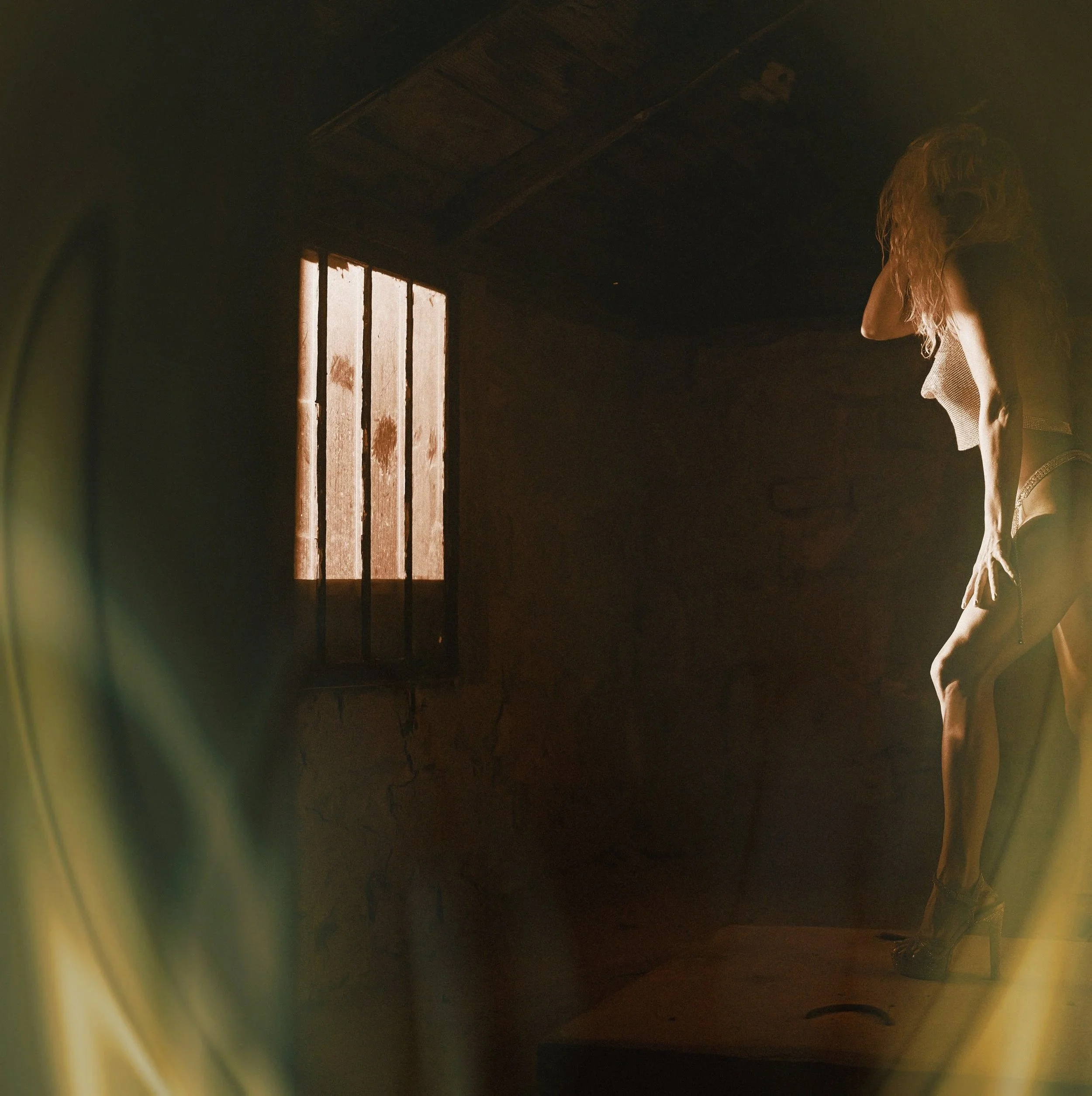 Drummer Chipper Bixby and 12-string Lily model for Athens Artists
